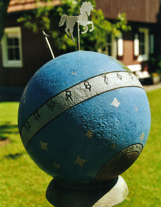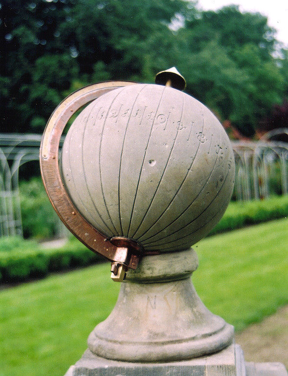 Het andere is de schaduwbol of terrella. Hierbij wijst de schaduwgrens op de bol de tijd. Omdat er aan twee zijden een schaduwgrens ontstaat, moet de gebruiker zelf invullen of het morgen of middag is.