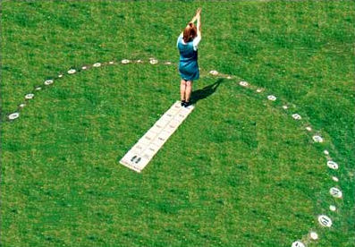 Bij de analemmatische zonnewijzer wordt een verticale gnomon op de goede plek op een noord-zuid lopende datumlijn geplaatst. De schaduw van de gnomon wijst de tijd op een ellipsvormige ring met uurpunten. De lange as van de ellips loopt oost-west. Als een persoon als gnomon optreedt, is dit een interactieve zonnewijzer: door actief de tijd te bepalen voel je jezelf "deel uitmaken van het hemels raderwerk".