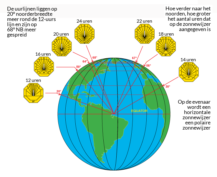11. Horizontale zonnewijzers op verschillende breedtegraden