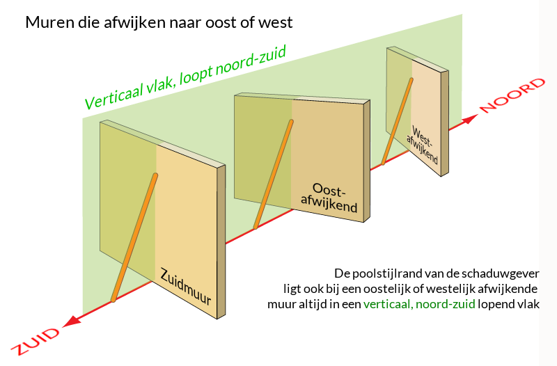 Zonnewijzers op een muur die niet precies naar het zuiden kijkt, noemt men afwijkende of declinerende zonnewijzers. De poolstijl blijft evenwijdig met de aardas en staat dus scheef ten opzichte van de wijzerplaat.