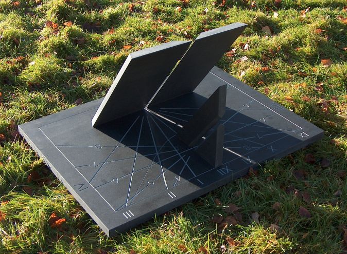 Verticale zonnewijzer nu inclinerend horizontaal, Aerdenhout |