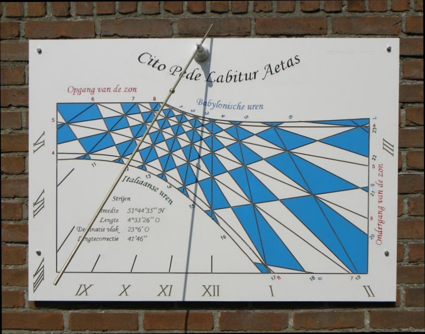 2011 / 06 Verticale zonnewijzer met Babylonische en Italiaanse uren, Strijen |
